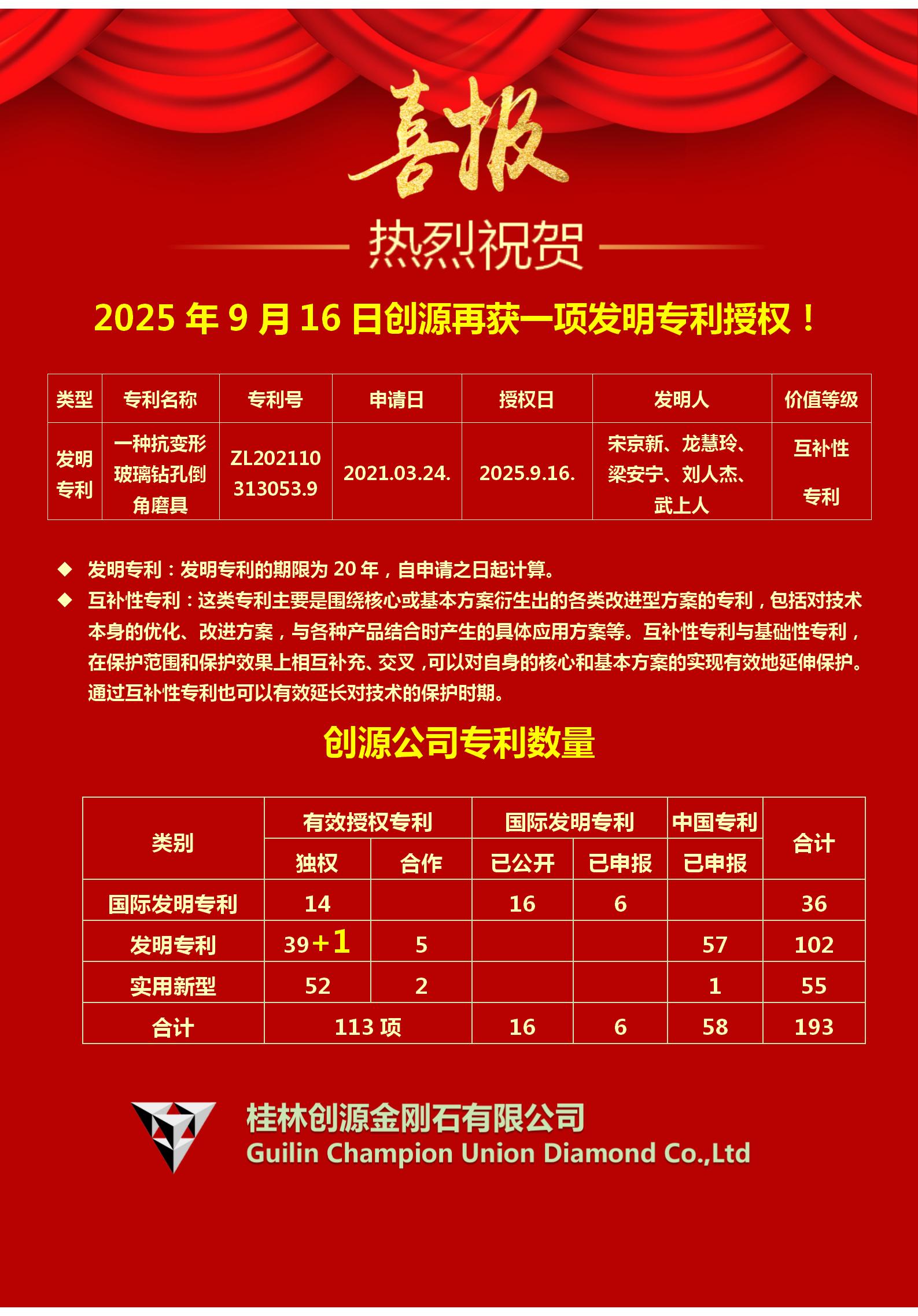 2025年9月16日创源再获一项发明专利授权!